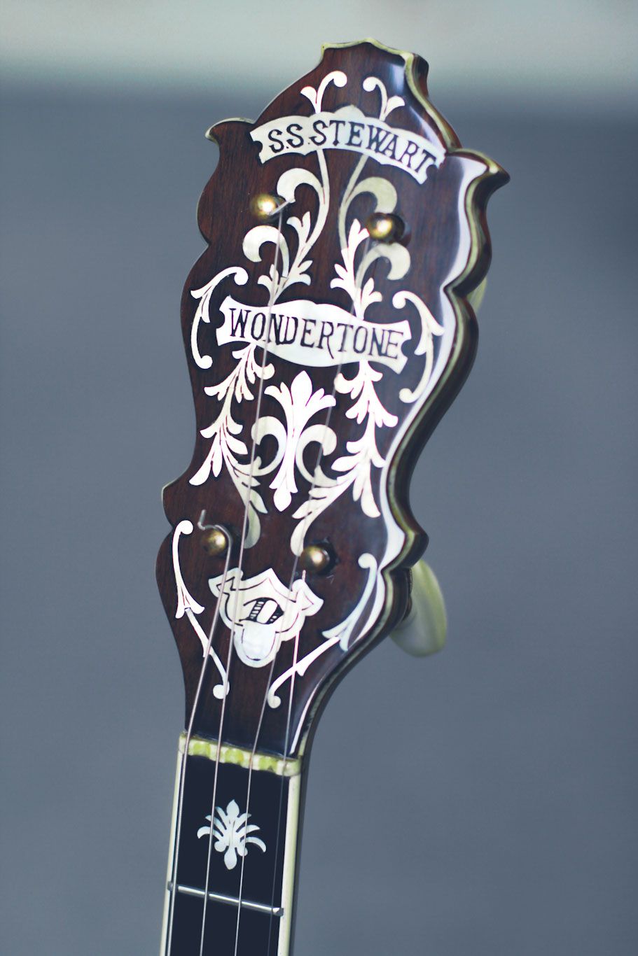 The SS Stewart brand name appeared on a wide variety of instruments across the better part of a century. Samuel Swain Stewart began building banjos in 1878, and by the 1890s his company’s banjos were widely regarded as some of the finest on the market. Stewart died in 1898, and the brand he created underwent several changes of ownership over the next two decades. New York-based instrument distributors Buegeleisen and Jacobson purchased the S. S. Stewart brand in 1914; as they did not actually manufacture banjos, B&J sourced their instruments from a variety of builders. They also expanded the line to include guitars and mandolins, and the brand would survive (in one form or another) in the B&J catalog into the 1960s. During the 1920s and 1930s, S. S. Stewart instruments encompassed a range of prices and quality but generally represented the upper echelons of products sold by B&J.