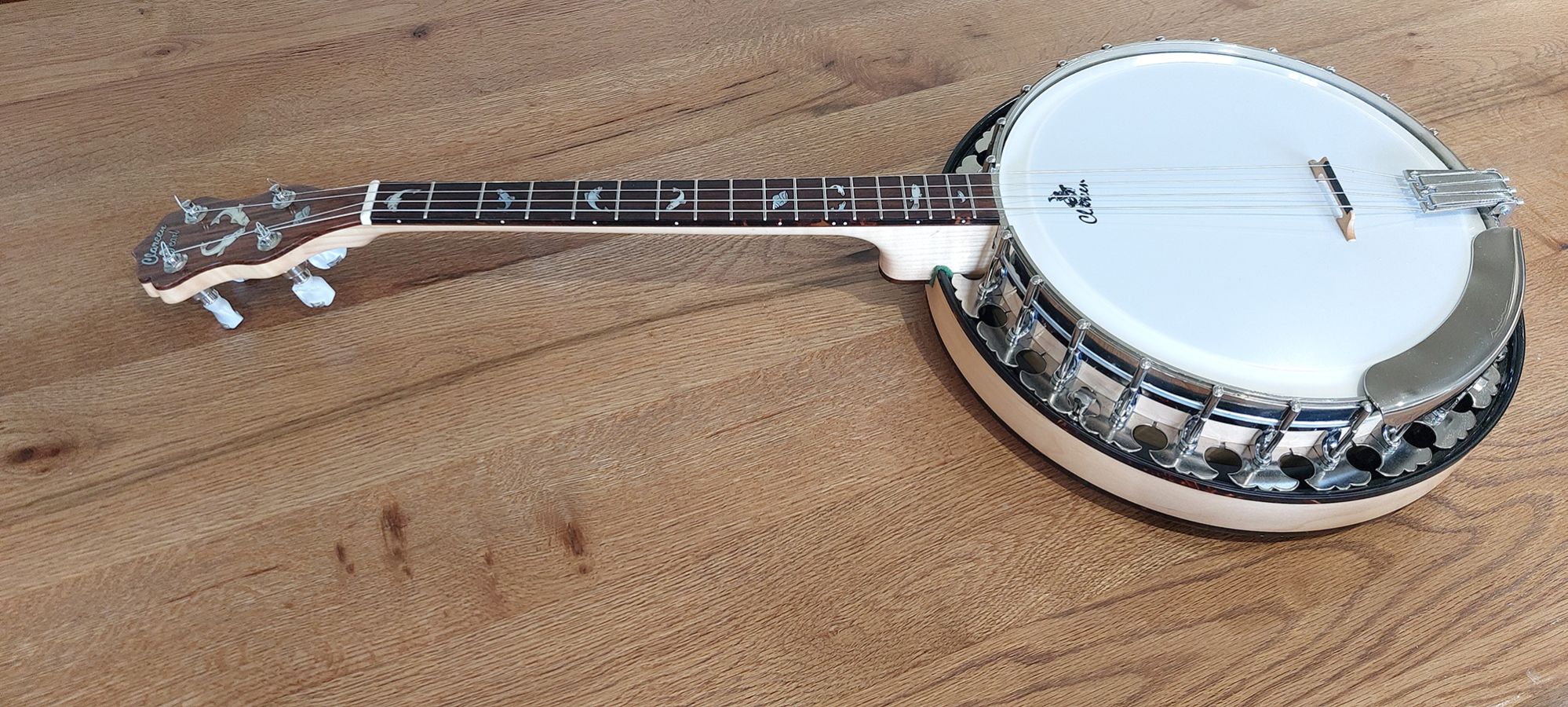 Made in 2021 this Clareen Pearl 17 fret tenor banjo is in excellent condition (apart from a few buckle marks on rear of resonator) one owner from new. It is made completely from high-grade maple and in conjunction with the Clareen Pearl Archtop Tone Ring, it produces a tone that is refined, sweet, mellow and rounded tone.
