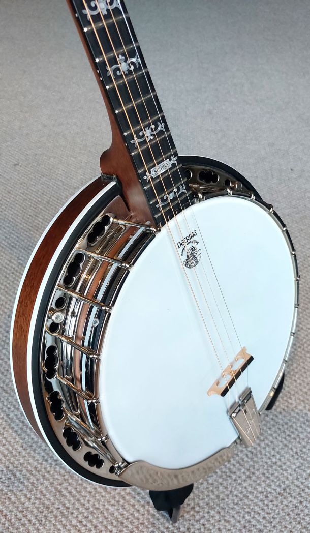 This must be the finest and most affordable professional tenor banjo on the market. An excellent banjo for tune playing with a fast action Deering neck and awesome power of the Deering -06- 20 hole bell bronze tone ring. The Sierra is the most popular Deering professional model, it is very affordable and you get all the important features that effect tone and playability.