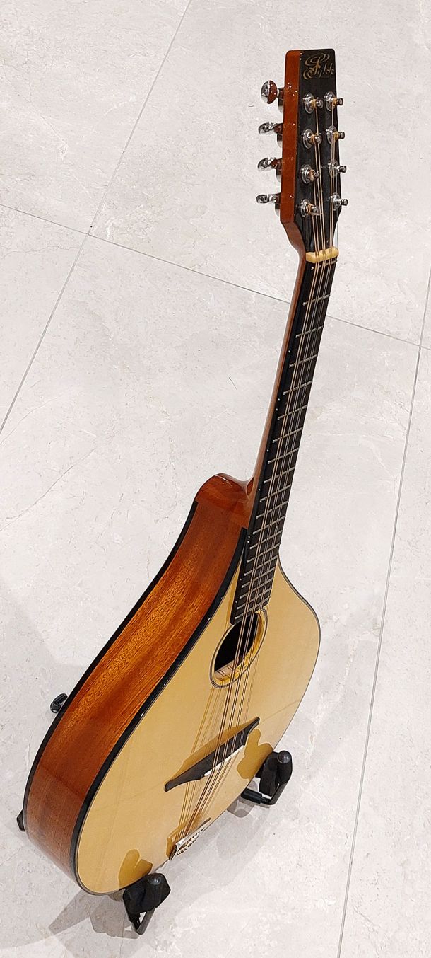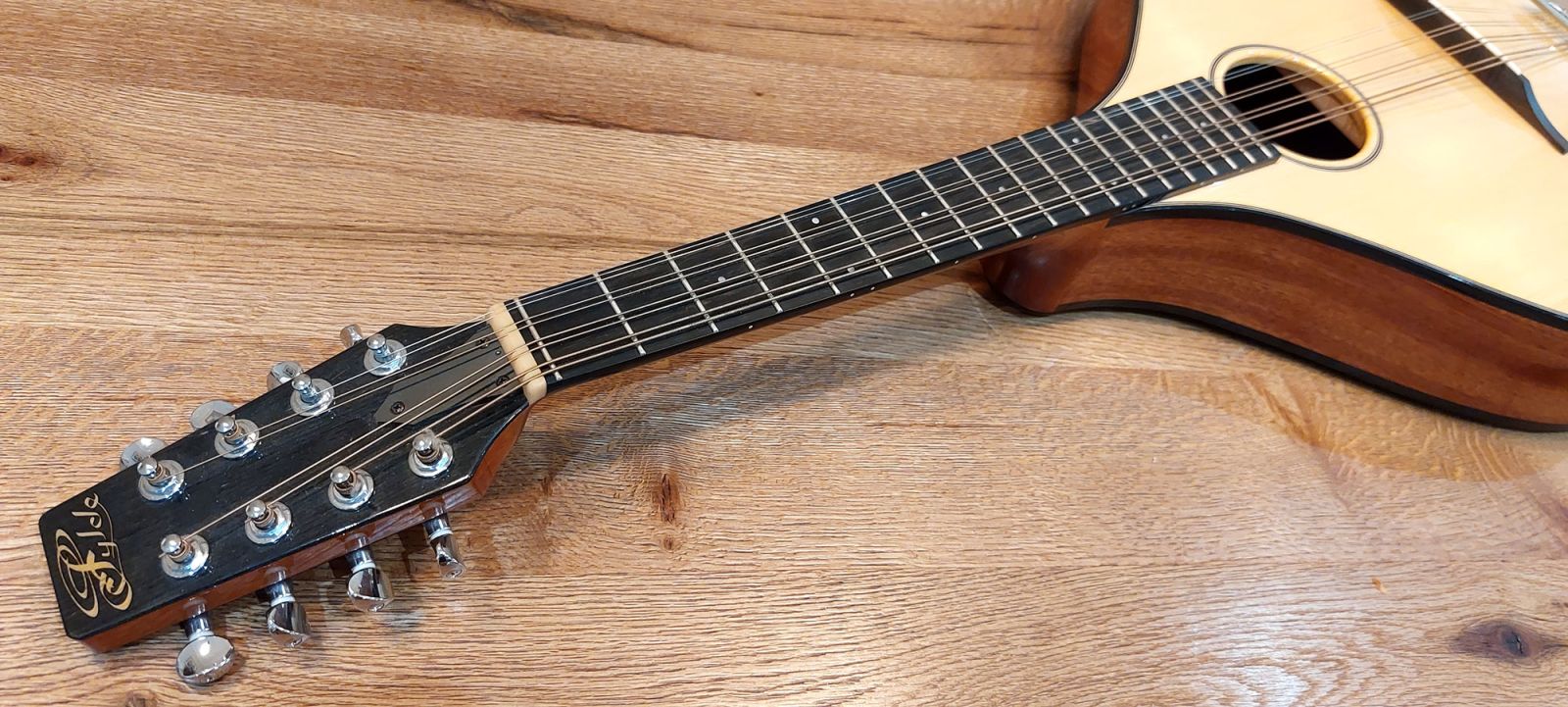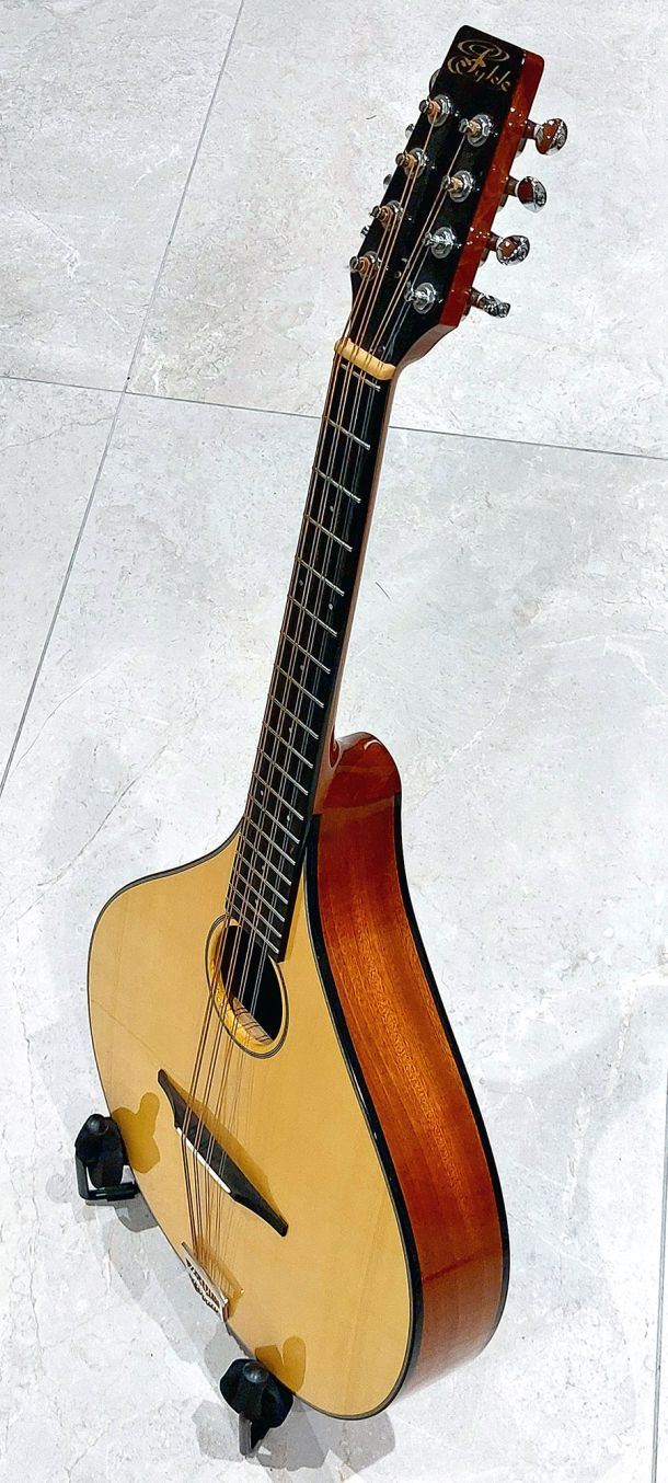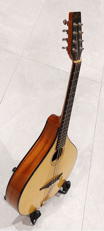 Often described as an Octave mandolin, but that raises confusion when compared with a bouzouki. Normally tuned GDAE, this Mandola is based on our arch top body shape. The spruce top, combined with a larger soundhole and a shallower body, produces a lively bright sound, particularly useful for tunes and anywhere it needs to stand out amongst other instruments.