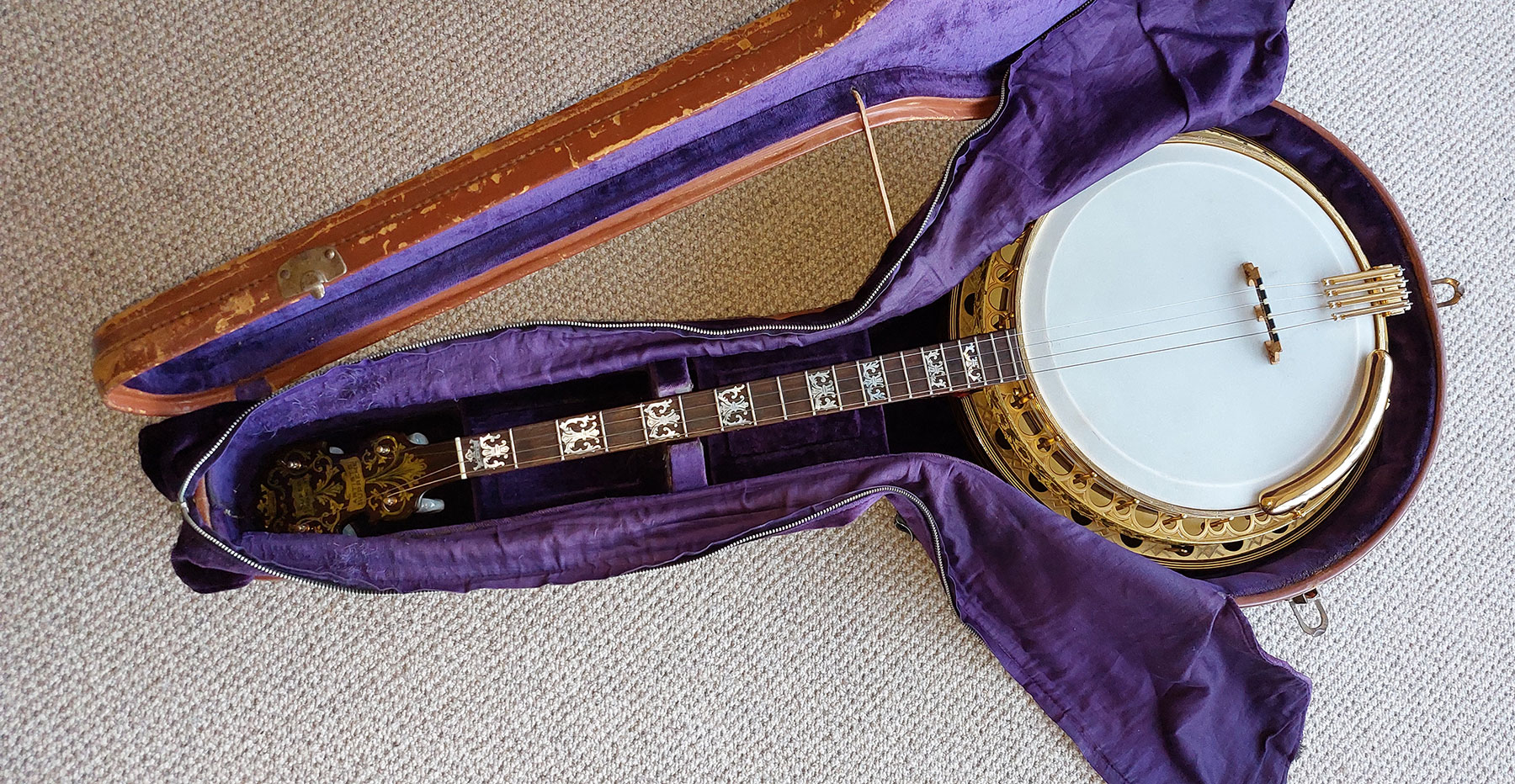 The pot is made from solid block maple, lathe turned with cocabola rosewood tone ring and cocabola bottom capped rim. 24 shoes with round hooks and nuts and notched tension ring. The neck is attached to the rim by 2 solid brass coordinator rods, made and fitted by Patsy Toman from Lurgan (Thanks Patsy). Fitted with Remo white top 11″ medium head. clamshell tailpiece, ebony/maple bridge and nickel plated armrest. The banjo has a beautiful rich woody tone with nice sustain and low action. Comes with a brand new Clareen Polyfoam case.