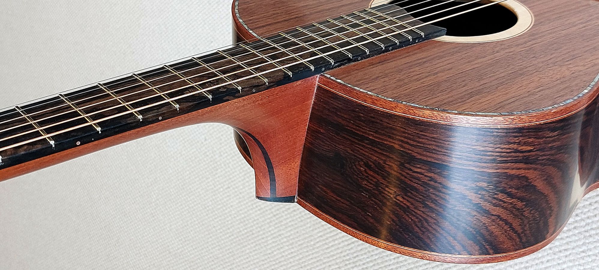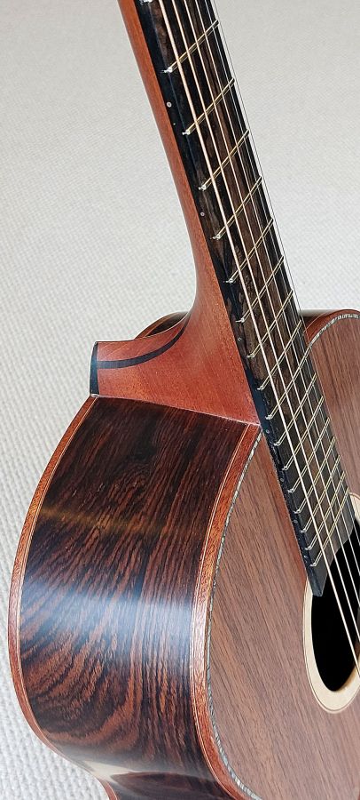 • Fingerboard: Figured Ebony – Displays beautiful grain patterns with a dark base and lighter streaks, adding visual flair and excellent durability.