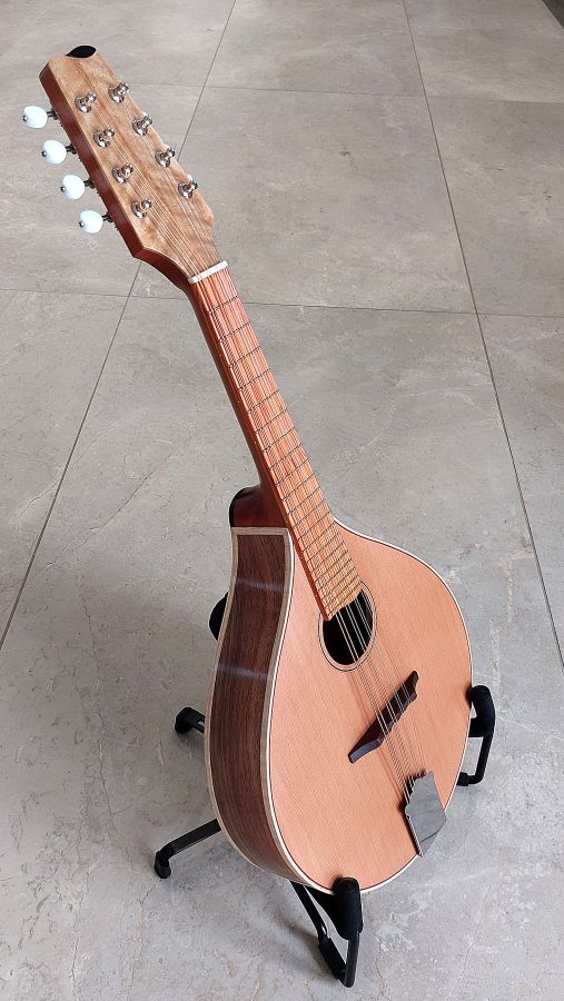 Beautiful handmade mandolin by Belfast luthier Stephen McClenaghan, formely of Lowden Guitars. Figured walnut back and sides, Yew fingerboard, mahogany/ebony 5 piece neck, Gotoh tuners. The mandolin was made around 1 year ago.