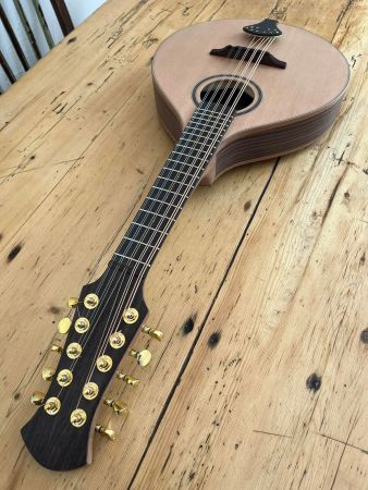 Octave Mandola (in the U.K and Europe) or Octave Mandolin (in the U.S and Canada) are both terms to describe this instrument. Tuned G.D.A.E from low to high, one octave below the Mandolin. This one has a scale length of 500mm making it one of the shortest in the market. Scale length 500mm, nut width 34mm, width at 12th fret 42mm, total length 850mm, body depth 100mm, body width 335mm.