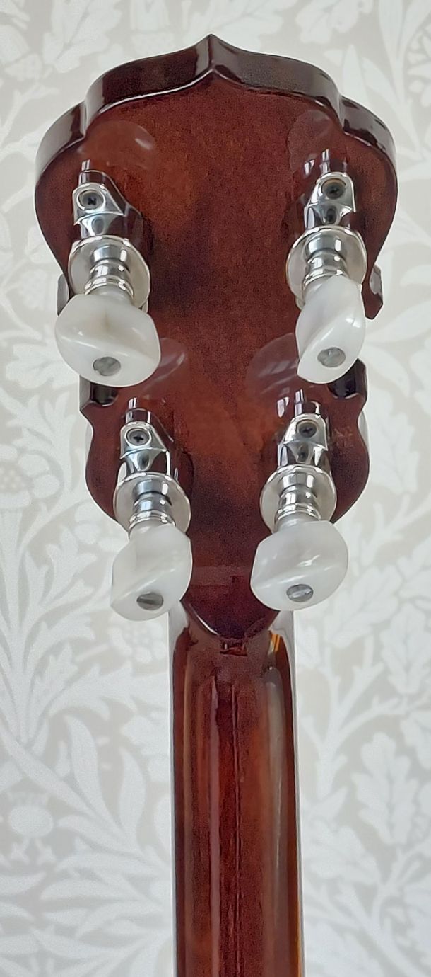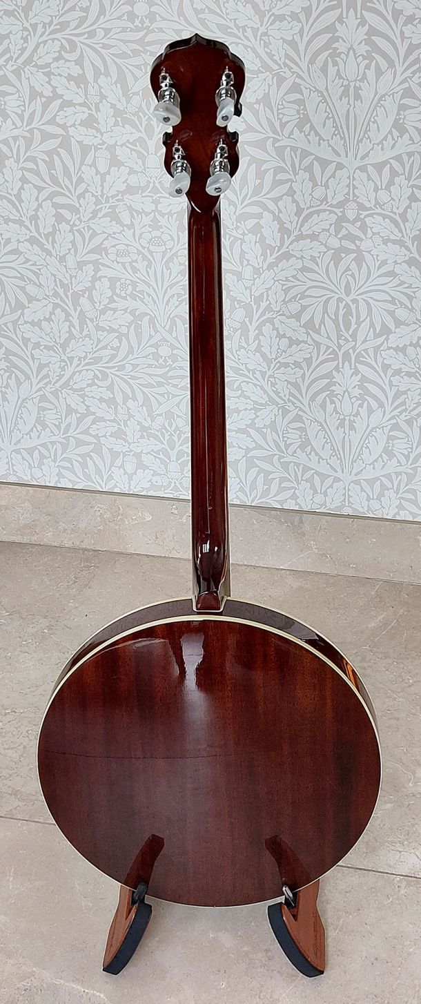 Late 70’s – early 80’s Maya Bowtie 19 fret tenor banjo. These are the famous Japanese copy of the Gibson Mastertone banjo which there was a huge worldwide lawsuit. Solid mahogany, rosewood fretboard, mother of pearl fret markers in the style of the Bowtie and headstock logo, its in excellent condition considering going on for 50 years old. The banjo has not been played much. Comes with new setup including new strings etc. Comes with a hardshell flight case.