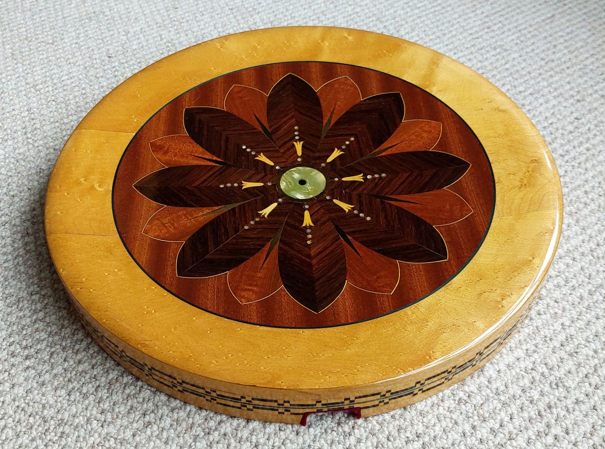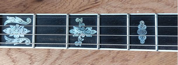 19 fret maple neck with centre laminate strips with white side binding, black dot position markers and ebony fretboard. Original mother of pearl inlay on fret board and headstock bearing the Paragon name. The name badge was engraved locally but the other MOP is original. The new neck is fitted with a truss rod for extra stability and new frets. The gold plated geared tuners are new Gotoh gold plated tuners. The rock maple heel cap is also multi laminated and is profiled exactly as the original plectrum neck. The pot assembly is all original with excellent gold plating throughout. Original Clifford Essex tailpiece and tailpiece slide cover. Original armrest with height adjuster. The rim is constructed from 1″ block maple with 20 drilled holes through to the perforated tone ring. This unique construction creates a passthrough for the soundwaves to deflect of the concave resonator and then projecting the sound out through the holes in the flange. This banjo is solid in construction, from the tension hoop, tension bolts, flange, tone ring etc it just reflects the mastery of the Clifford Essex Banjo Company. The concave resonator is not only is designed for sound reflection but also sits nice and snug against your tum! No need for description here, the photos tell it all. The banjo comes with a period vintage case in great condition (not sure if original but perfect fit).