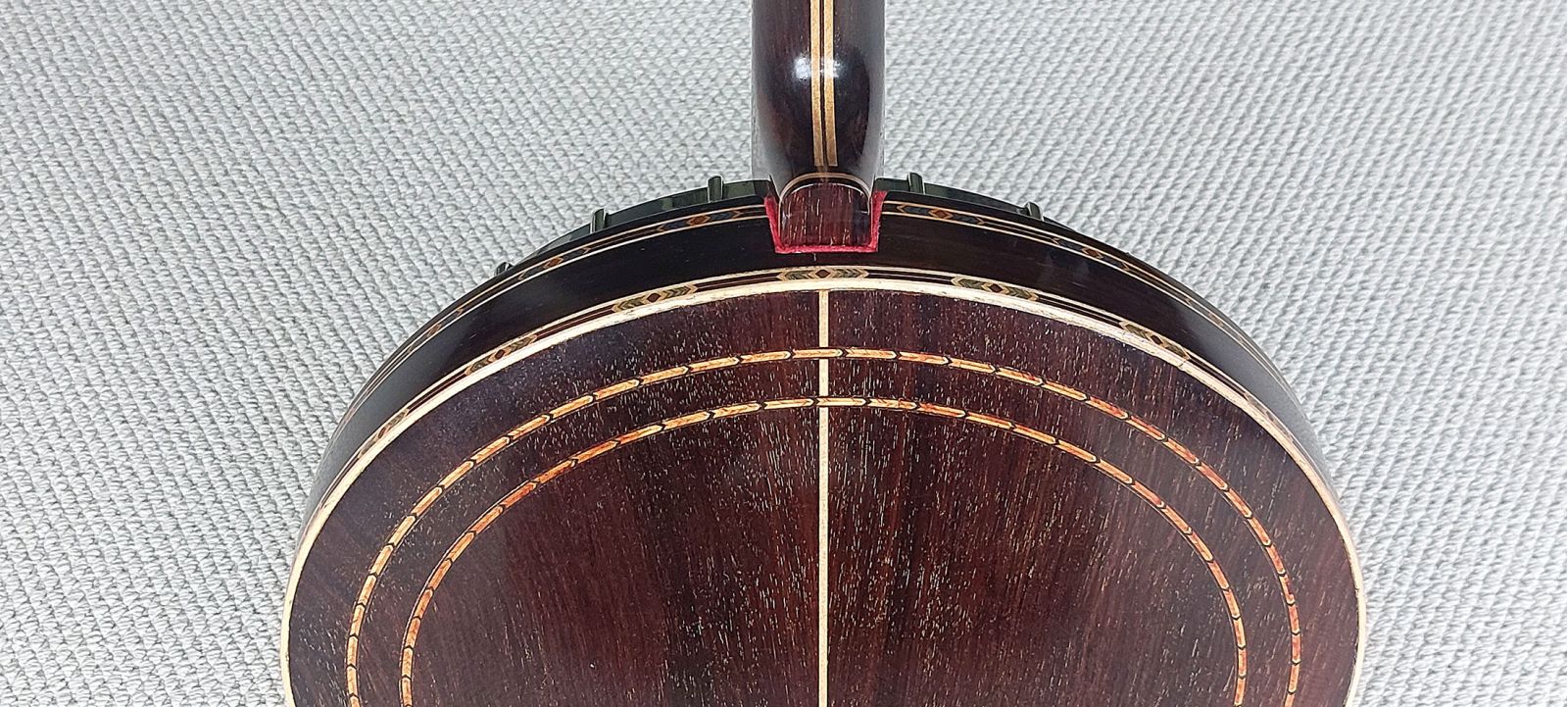 - Brazillian rosewood decorated with maple /pearwood centre stripe and outer circle concentric rings