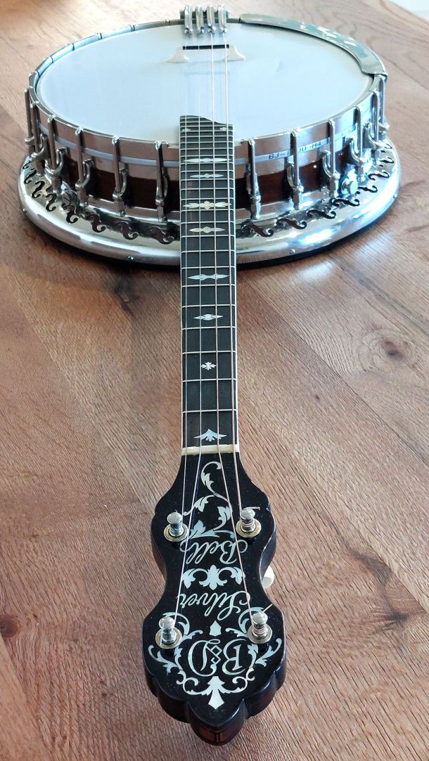 Very beautiful all original plectrum banjo. Read full details below