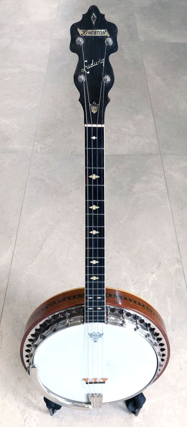 Ludwig Kingston 19 fret tenor banjo built in the mid 20’s in Chicago. It’s a great chance to own an easy to play vintage tenor banjo which has been set up with low action to play Trad music on. It has a nice punchy sound and ideal for intermediate level of playing.
