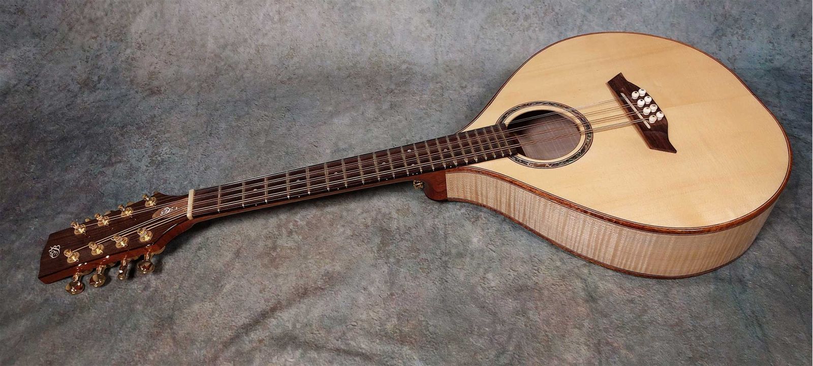 Beautifully handcrafted octave mandolin by West Yorkshire Luthier Thomas Buchanan. This instrument was recently made but the current owner has decided to move to tenor banjo and now offers it for sale at a fraction of the new cost price. This one has a scale length of 500mm making it one of the shortest in the market. The body back and sides are made from solid figured maple with spruce top, rosewood fretboard and mahogany neck. The bridge is rosewood with abalone rosette, solid mahogany binding and Gotoh individual tuners.