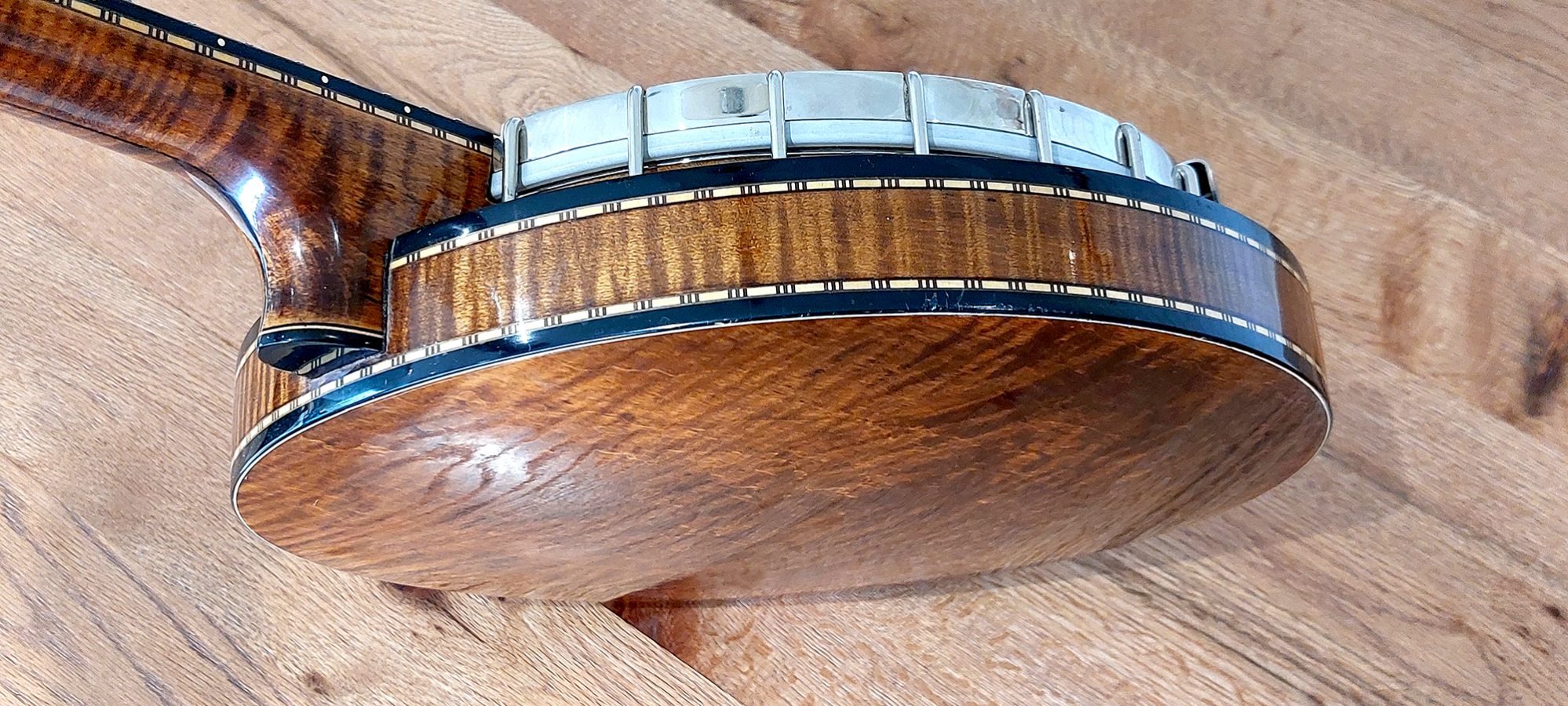 Wildwood Banjos began in the summer of 1973 in Arcata, Ca., single handed by Mark Platin. Being a sole trader Mark’s banjos had a distinctive flare for figured woods, tasteful inlays, unique design, and above all, a true concern for authentic sound and play ability. There are well over 6000 Wildwood banjos in the world doing their part for the rich history of old-time, bluegrass and traditional Irish.
