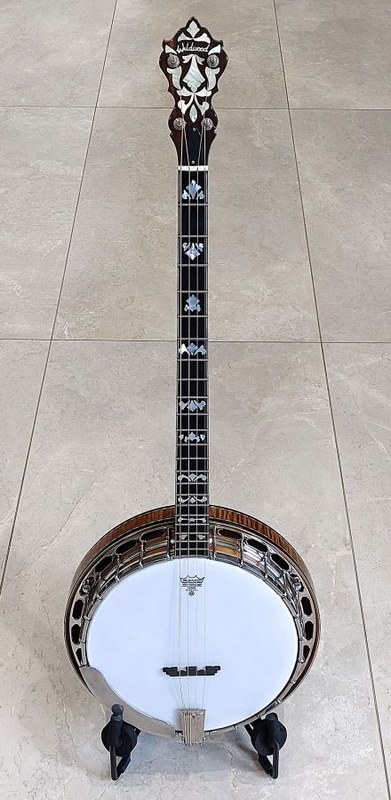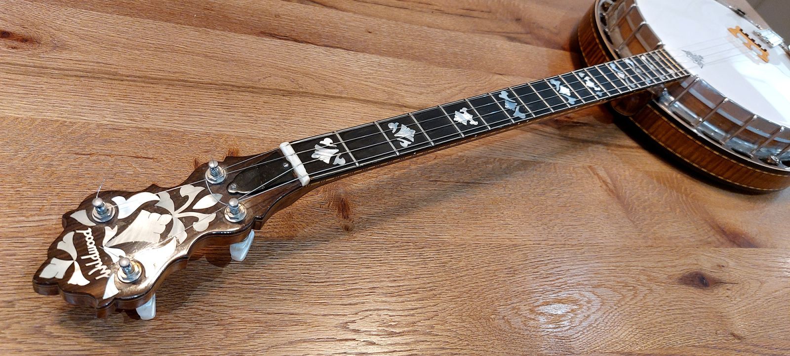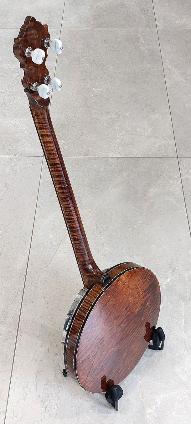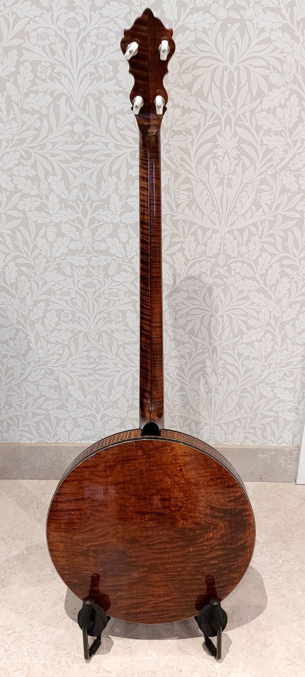 The sound from these plectrum banjos is amazing and you have the option of using a capo if you prefer a shorter stretch. An ideal banjo for gigging in a folk band as it gives you a wider range of keys when using a capo. You’ll not find too many of these banjos around in the UK. I actually own one of his 19 fret open back tenor banjos, it is my N0.1 go to banjo!