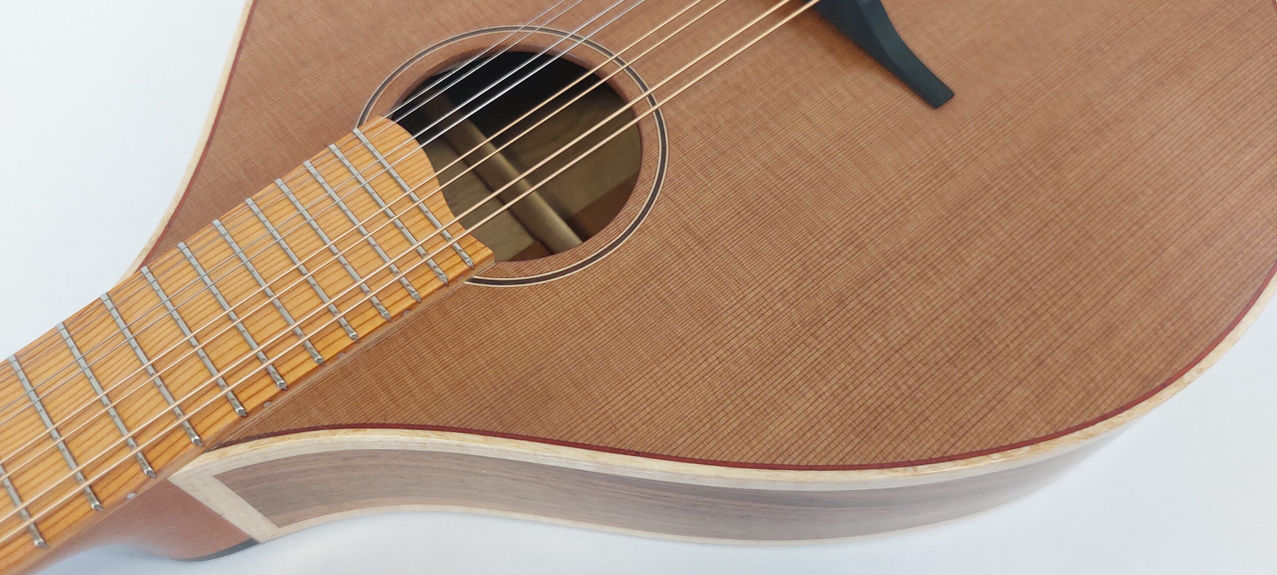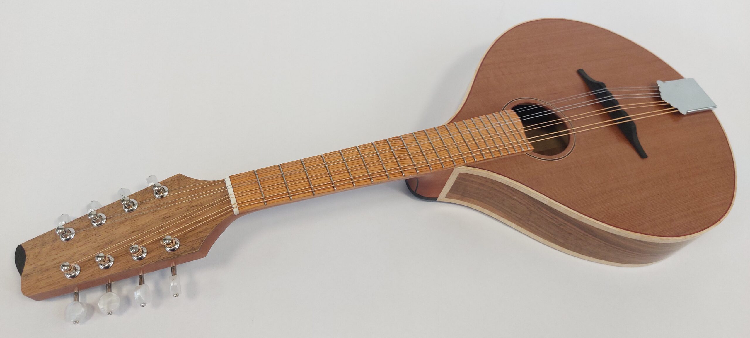 Beautiful handmade mandolin by Belfast luthier Stephen McClenaghan, formely of Lowden Guitars. Figured walnut back and sides, Yew fingerboard, mahogany/ebony 5 piece neck, Gotoh tuners. The mandolin was made around 1 year ago.